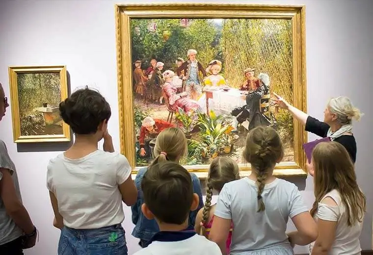 Jeździmy na wycieczki do warszawskich muzeów sztuki na aktualne wystawy. Zwykle zwiedzamy wystawę z przewodnikiem, by dowiedzieć się jak najwięcej. Potem jest czas na wspólne warsztaty – warto, żeby w plecakach małych artystów znalazły się szkicowniki!