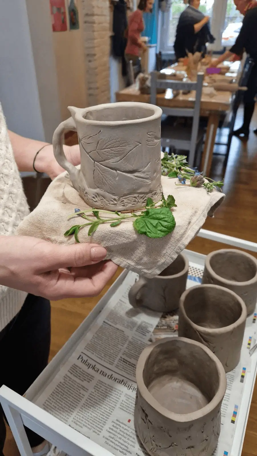 Nie myśl jednak, że to kolejna robota do wykonania! To twórczy, swobodny proces. Tu nie ma miejsca na niezdrową konkurencję, wyścigi i parcie na wynik – liczy się z to kreatywność, uważność, obecność tu i teraz. Kontakt z gliną wycisza, sprzyja koncentracji i redukuje stres. Jeśli więc na co dzień jesteś w ciągłym biegu, takie zajęcia będą wymarzoną chwilą wytchnienia. Mają też przyjemny wymiar praktyczny: dzięki temu, że mamy na miejscu piec do wypału, możesz odebrać swoje dzieła, a potem ich używać albo upiększyć nimi wnętrza.